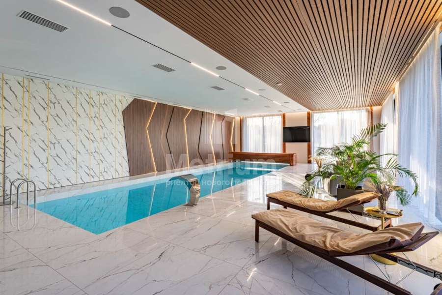 | Этажи/уровни: | 1 этаж: холл, гардеробная, постирочная, кухня, Столовая с выходом на террасу, Гостиная с камином, кабинет, спальня, санузел - 2шт., душевая - 3шт., бассейн, сауна, хаммам, лаундж зона, терраса 2 этаж: холл, мастер - спальня с санузлом и гардеробной, терраса - 2шт., балкон, детская спальня с гардеробной и санузлом - 2шт., спальня |