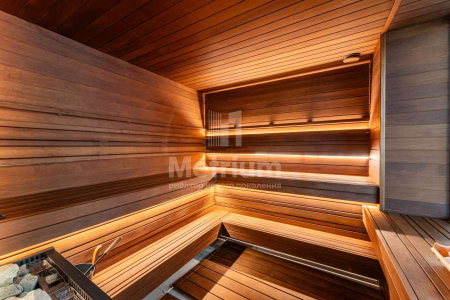 Планировка дома продумана до мелочей: на первом этаже расположены просторный холл, гардеробная, постирочная, современная кухня, столовая с выходом на веранду и дровяным камином-барбекю, гостиная с паровым камином, кабинет, гостевой санузел, котельная, гостевая спальня, и роскошная спа-зона (200 кв.м!) с бассейном 10х5 м, сауной, хамамом, тремя душевыми и зоной отдыха. Второй этаж включает в себя просторный холл со вторым светом, главный спальный блок (100 кв.м) с выходом на террасу, два детских блока с гардеробными и ванными, и гостевую спальню. Отдельно стоящий гараж на два автомобиля с квартирой для персонала и гостевая парковка на 8 машин обеспечат комфорт для вас и ваших гостей. Участок площадью 100 соток разделен на три зоны: въездная группа, придомовая территория с террасой и очагом, и большая лужайка с выходом к реке Истра.