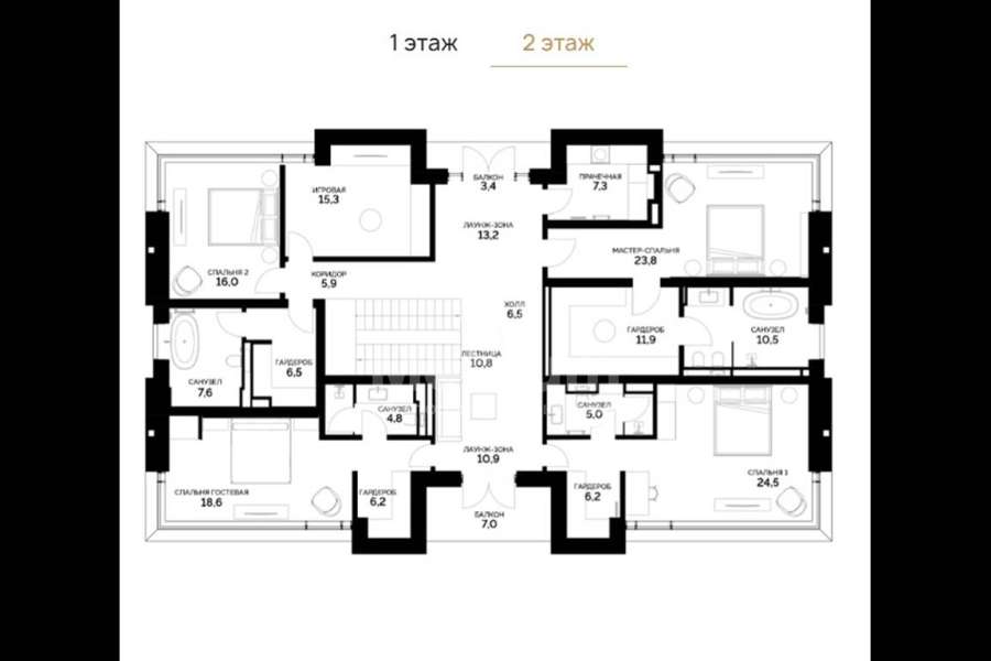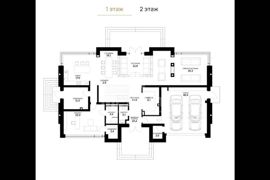 | Этажи/уровни: | 1 этаж: гардероб, гостиная, тайная гостиная, коридор, кухня, кабинет, кладовая, с/у, котельная, гараж на 2 м/м 2 этаж: холл, лаунж-зона, балкон, прачечная, мастер-спальня с гардеробом и с/у- 4 шт, игровая |