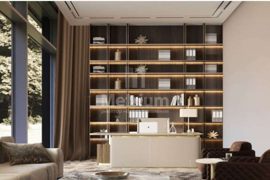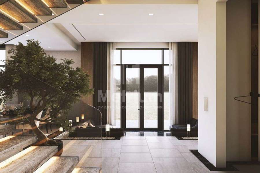 Комфортабельный дом, разработанный с учетом потребностей современной семьи. Фасад отличается строгостью и элегантностью, а планировка продуманностью решений. На площади в 455 кв. м. расположилось пять просторных спален с с/у и гардеробными, гостиная, совмещенная с кухней и столовой, а также з террасы и гараж на 2 машиноместа. Городской уровень комфорта обеспечивают: подключенные к дому центральные коммуникации, система антиоблединения и наличие собственной управляющей компании. Участок в 23,48 сотки позволяет дополнить дом садом или дополнительной постройкой.