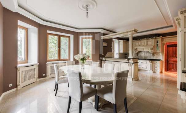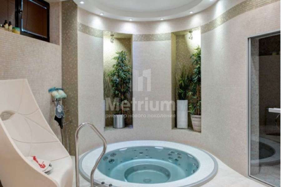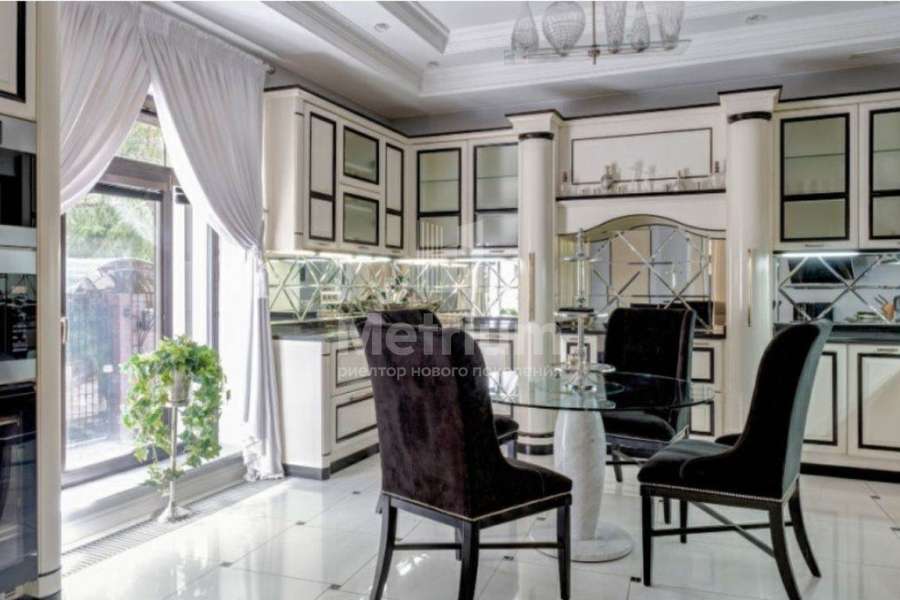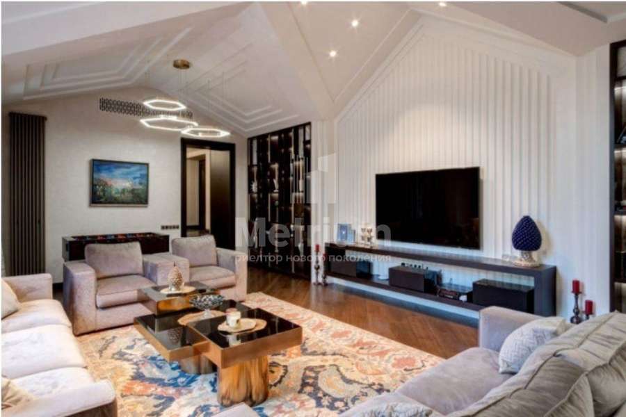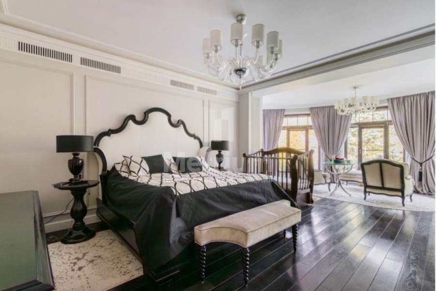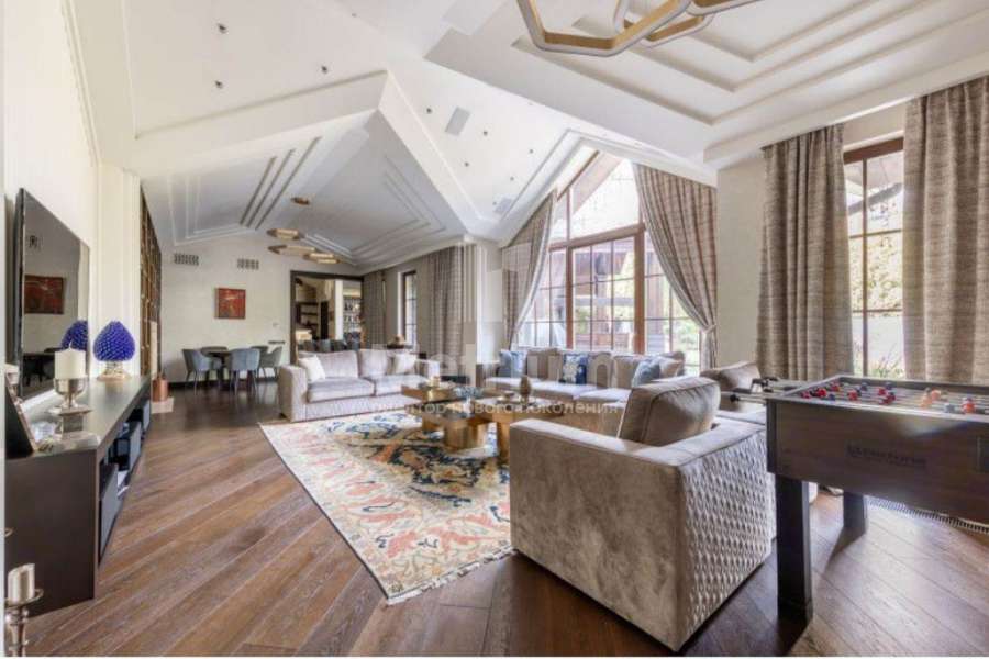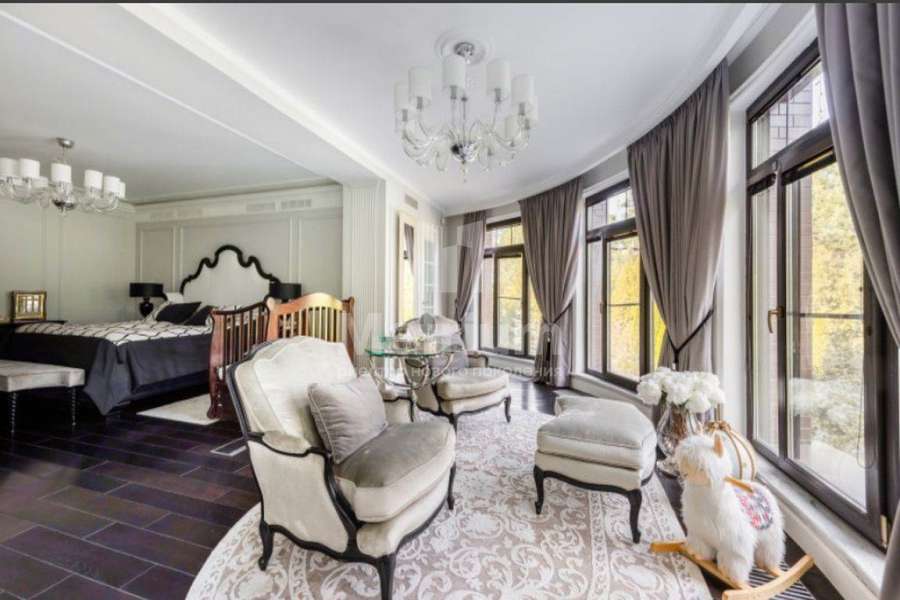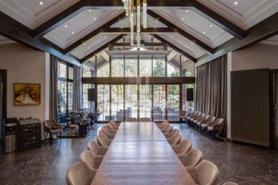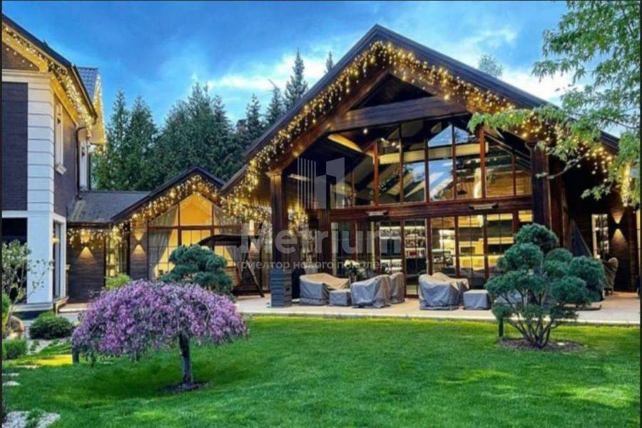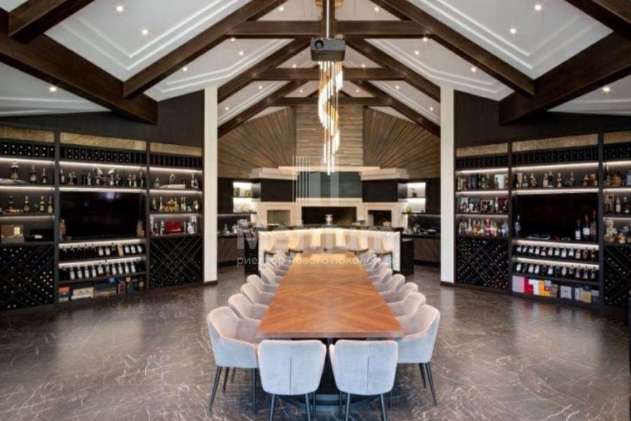 Этот светлый и просторный дом обладает большими витражными окнами, что создает атмосферу тепла и уюта. Дом с премиальной отделкой «под ключ» и полностью меблирован. Уникальное жилой комплекс состоит из трех строений: основного дома с переходом в домшале и с переходом в дома для персонала. Основной дом (650 кв.м) предлагает на цокольном этаже великолепную спа-зону с сауной и хамамом, а также просторную зону отдыха с камином, массажными креслами и кинозалом, постирочную, с выходом к дому для персонала, шубную, сан.узел с душевой и бойлерную с вентиляционной. Первый этаж: холл, гостиная, кухня столовая, гостевой сан. узел, гардеробная, гостевая спальня и переход в дом шале. На втором и мансардных этажах, расположены 5 спален со своими сан.узлами и гардеробными, детская игровая. Из основного дома можно перейти в дом-шале, где расположены гостиная, кабинет, большая профессиональная кухня-барбекю с залом для гостей, рабочая кухня и переход в дом для персонала.(80 кв.м).