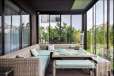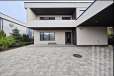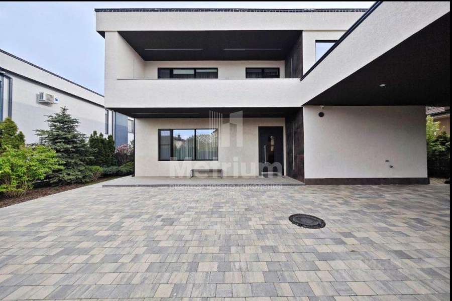 Панорамные окна и высокие потолки создают атмосферу открытости и наполняют дом естественным светом. Участок ровный, с брусчаткой на входе и зеленым газоном во дворе.