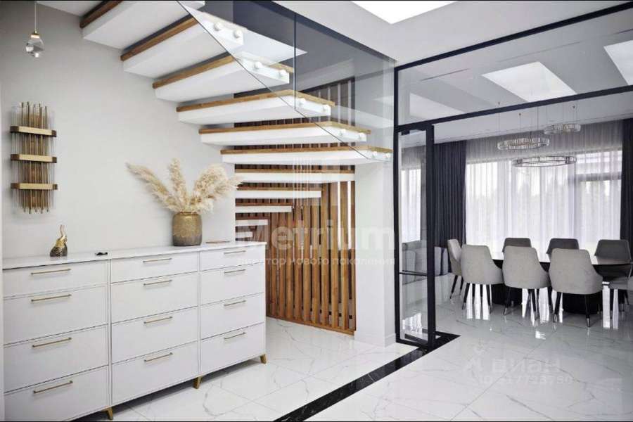 В продаже стильный и современный дом 277 кв.м в жилом комплексе Новорижский в 23 км от МКАД по Новорижскому шоссе, расположенный в старой застроенной части посёлка.