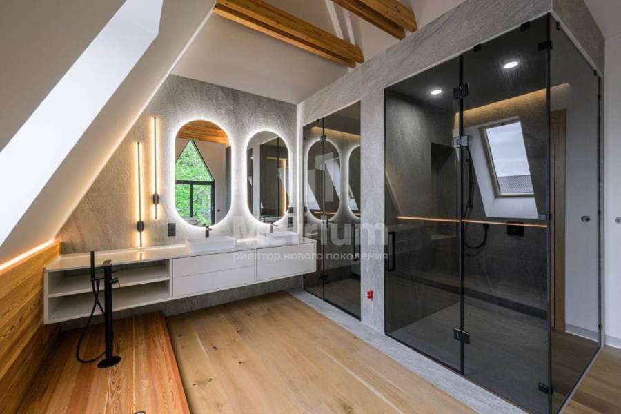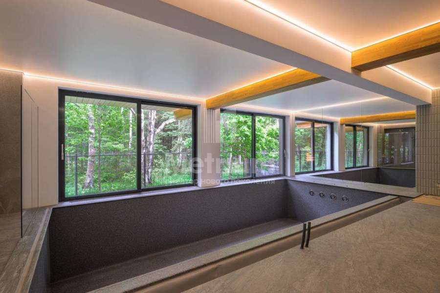 Дом готов для жизни, выполнена качественная отделка, установлена техника от ведущих производителей. В интерьере использованы натуральные экологичные материалы в интерьере- шпон дерева, натуральный шпон, массив. В доме объединенная кухня-гостиная с камином и вторым светом, кабинет для работы, 5 спален, а также бассейн! Все террасы и балконы имеют вид на круглогодично зеленые деревья, а также на террасе оборудована барбекю-зона с дровяным камином.