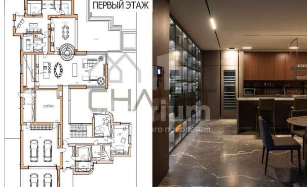Дом предлагается без отделки. Фасад облицован натуральным камнем В доме предусмотрено все необходимое для Вашего комфорта: Спа-зона с бассейном, хамамом, фитнесом, винная комната, шубохранилище. В доме 5 спален, 3 из которых полноценные мастер-блоки с гардеробными и собственными ванными комнатами. Для приятного времяпрепровождения с семьей или близкими предусмотрена просторная кухня-гостиная 280 кв.м!
