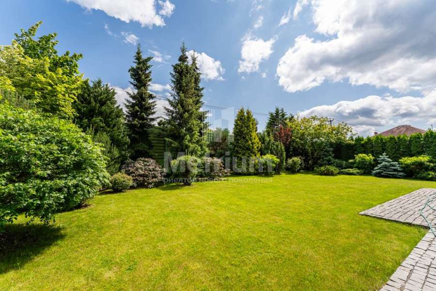 Дом расположен на участке 11 соток, на котором установлена дренажная система с низким энергопотреблением и простым управлением. Выполнен ландшафтный дизайн, деревья привезены из Германии, предусмотрена парковка на два машино-места.