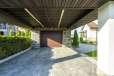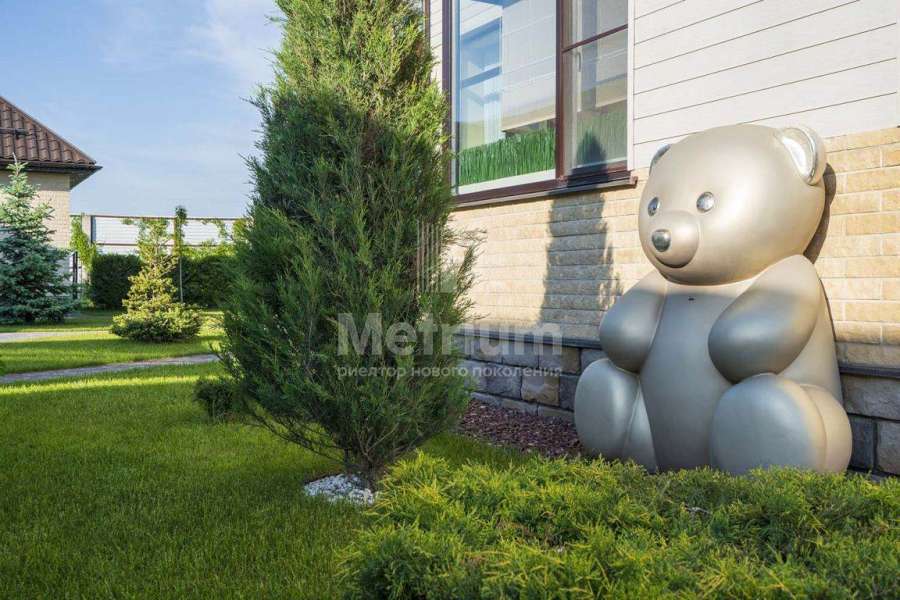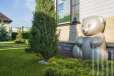 На участке выполнено благоустройство: газон, вымощены дорожки, высажены кустарники, туи, ели.