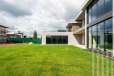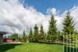 Коттедж расположен на участке 21,55 сотка, где разбит газон.