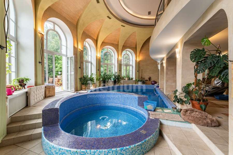 Дом предлагается с отделкой, с зоной для релакса с бассейном, а также с беседкой с барбекю-зоной и дровяной печью. Предусмотрен гараж на 2 машины.