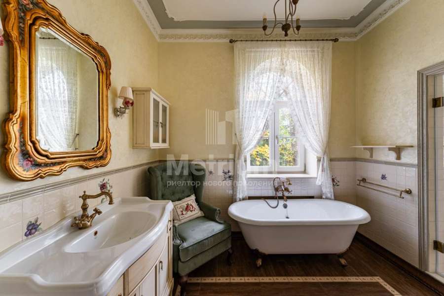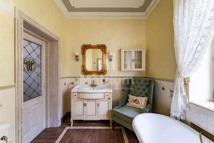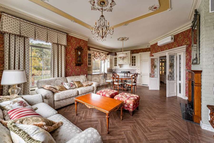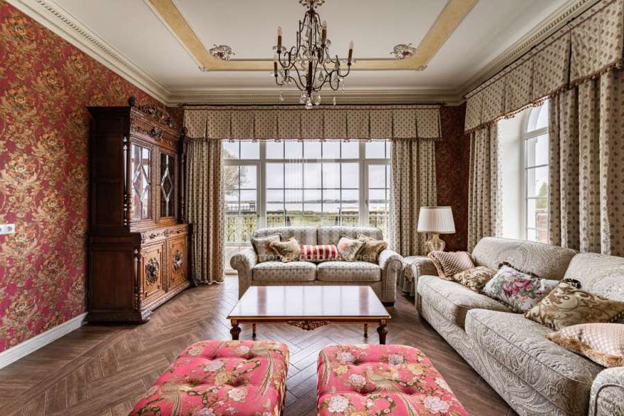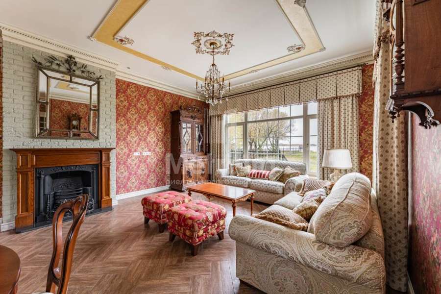 Эксклюзивный особняк 407 м на первой линии Московского моря. Выполнен дизайнерский ремонт, с премиальными материалами, меблированая кухня, встроенная техника премиум-класса. Интерьер дома выполнен по классическим канонам английского, а если точнее, викторианского стиля: глубокие насыщенные тона обоев, преобладание в них растительного орнамента, обилие текстиля (шторы, обивка мебели, подушки, пледы),