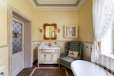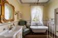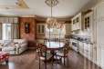 много деревянной резьбы (потолочные карнизы, двери, мебель), элементы кирпичной кладки, мозаичные полы в прихожей и санузлах, насыщенность комнат мебелью и отсутствие свободных мест (даже в гостиной), изысканные санузлы как важная часть пространства.