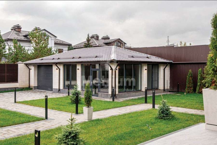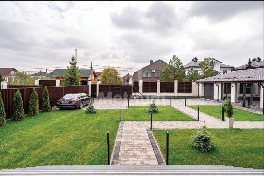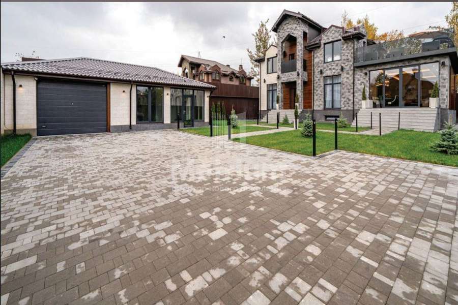 Дом 435 м правильной планировки с выходом на террасу на 2 этаже 85м, гостевой дом с гаражом 95 м, площадка для паркинга (8 автомобилей).