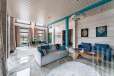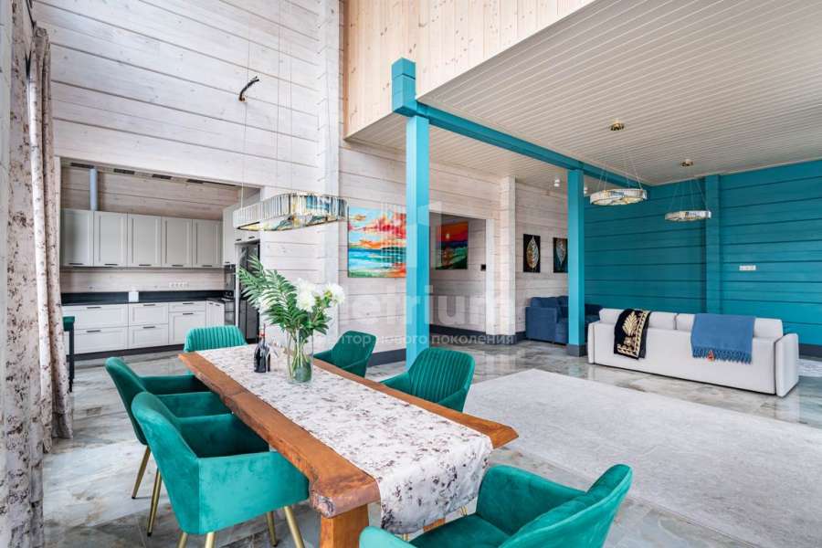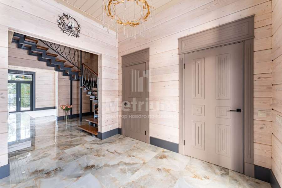 Просторный холл и гостиная площадью 54 кв.м с выходом на террасу. Второй свет в гостиной высотой потолка в 7.2 метра, терраса 34 кв.м. Высокие межкомнатные двери, система общего кондиционирования дома с общим внешним напольным (уличным) блоком.