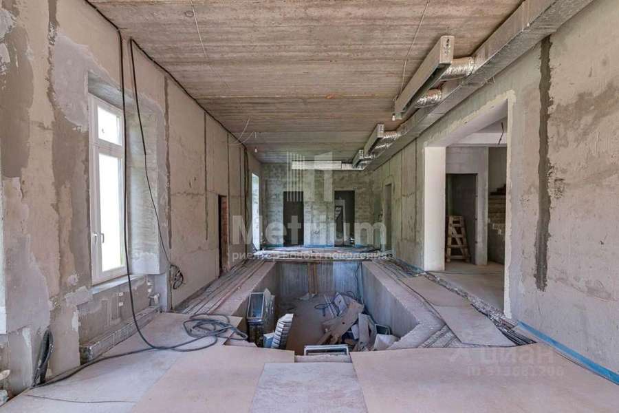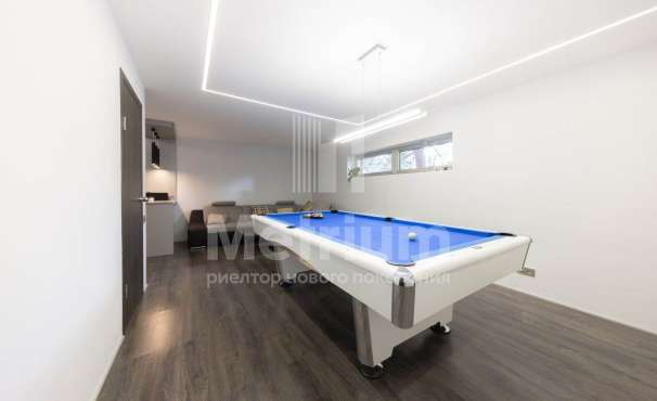 В доме спланированы 5 просторных спален, каждая из которых имеет свою гардеробную и санузел. Уютная просторная гостиная со вторым светом. Для активного отдыха спроектирован бассей. На участке в 27 соток высажены крупные деревья. В доме разведены все необходимые коммуникации. На территории участке отдельно выстроено здание под гараж на 2 машиноместа, а также над гаражом предусмотрена зона для персонала.