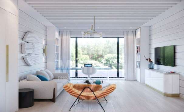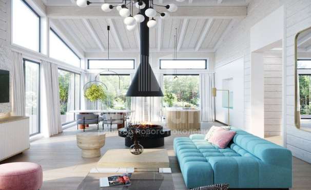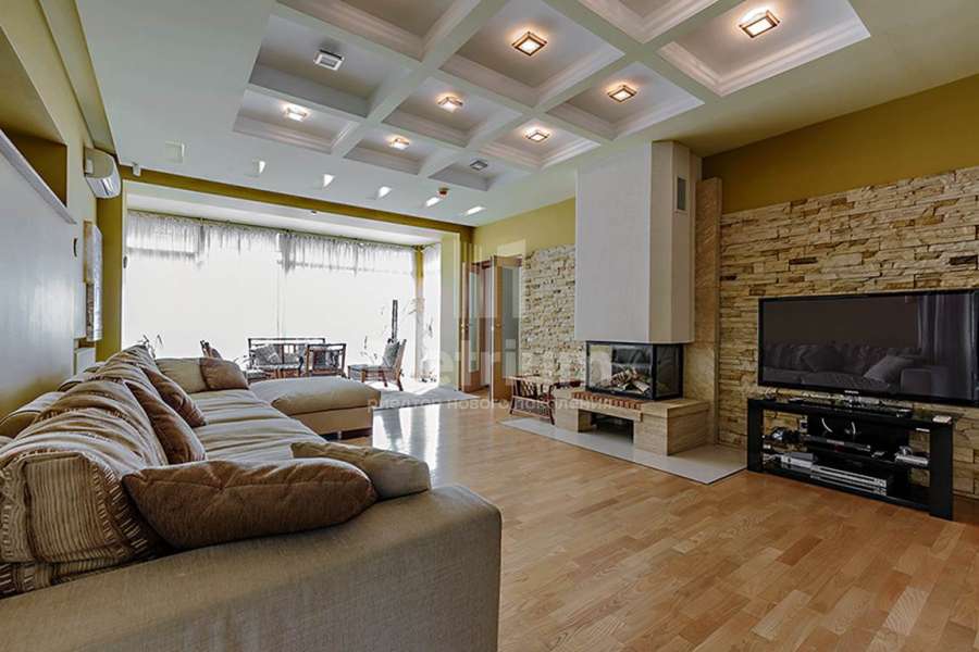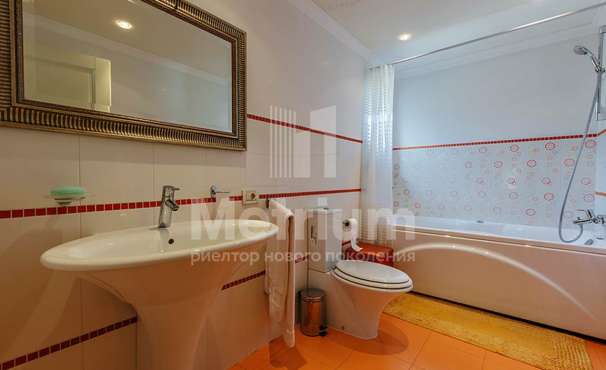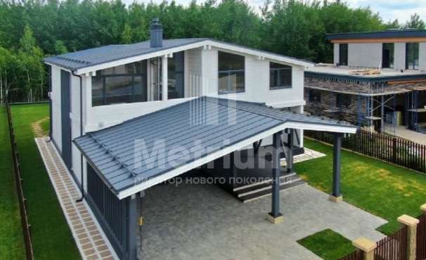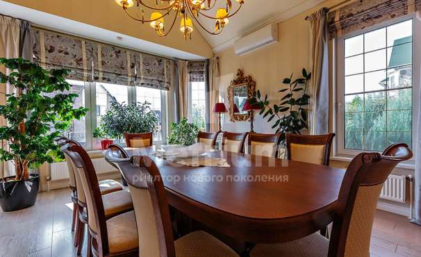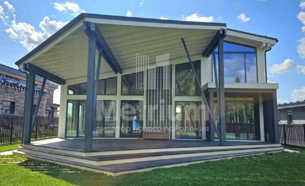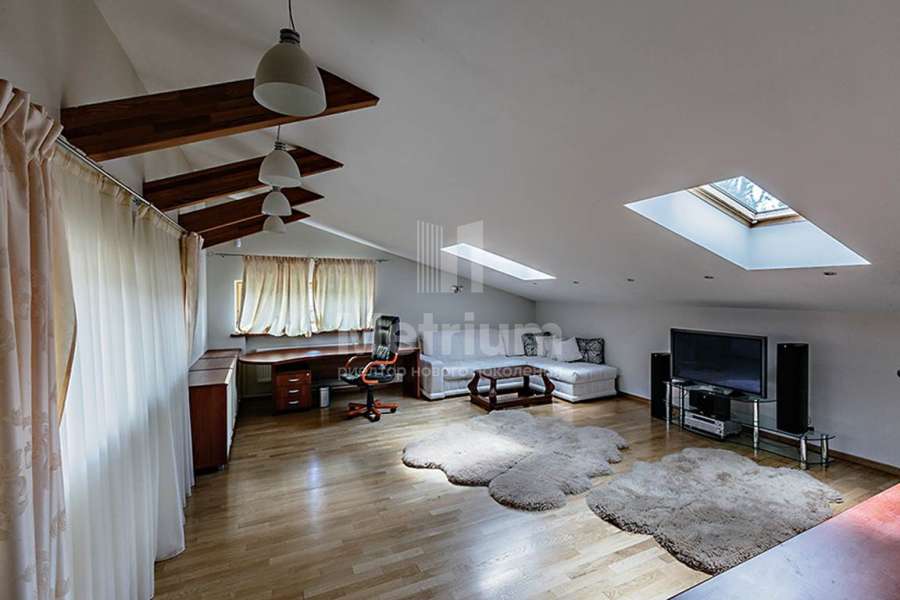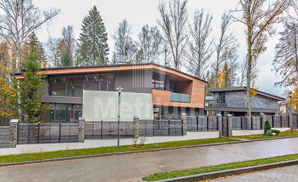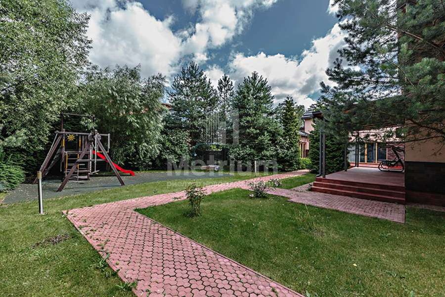 Двухэтажный коттедж в тихом уютном поселке на Новой Риге. На лесном участке находятся: основной дом (350 кв.м), гостевой дом (175 кв.м), две веранды, зона отдыха с BBQ, детская игровая зона.