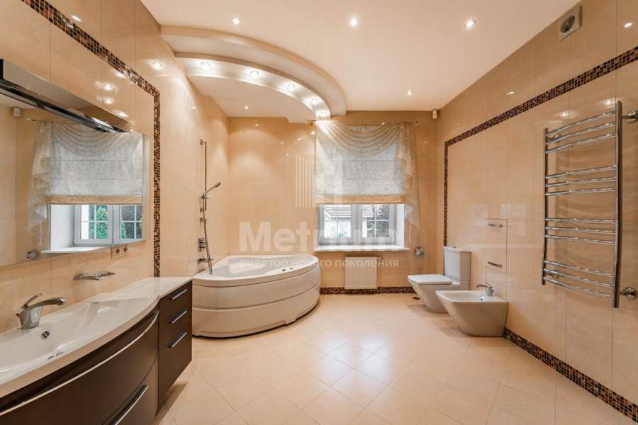 Дом с чистовой отделкой и ремонтом, со всеми видами досуга: каминный зал, бильярдная комната, кинозал, дискозал, тренажерный зал, SPA-зона: бассейн с выходом на участок, хамам.