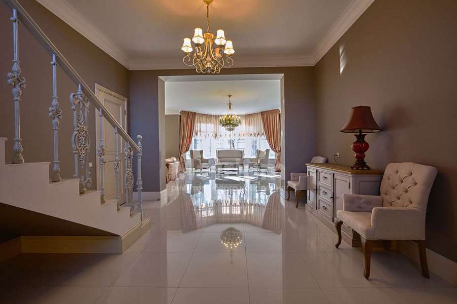 Предлагается светлый дом в лесном коттеджном поселке. В доме все совершенно новый свежий ремонт и удобная планировка. На первом этаже расположена общая зона с гостиной и кухней, на втором - приватная часть со спальнями и с/у.