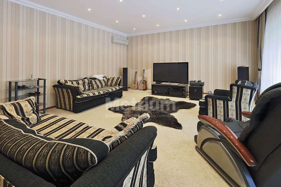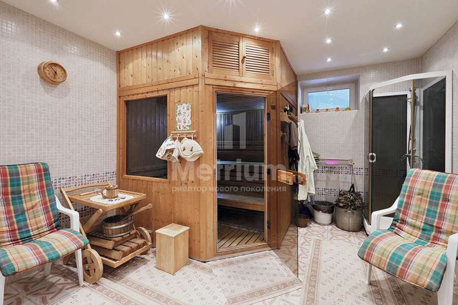 | Этажи/уровни: | 1-й этаж: прихожая, кухня, гостиная, зимний сад с выходом во внутренний дворик, сауна, бассейн, ванная комната с душевой кабиной, кинозал, гараж на две машины с мастерской и смотровой ямой 2-й этаж: 5 спален, 2 ванные комнаты (джакузи и ванная с окном), бильярд, библиотека, кабинет, 2 застекленных балкона на обе стороны дома 3-й этаж: 2 гостевые спальни, ванная комната с душевой кабиной, игровая Цоколь: тренажерный зал, гардеробная, солярий, винные шкафы, холодная комната для заготовок, бойлерная + постирочная, насосная станция другие постройки: навес на 2 автомобиля |