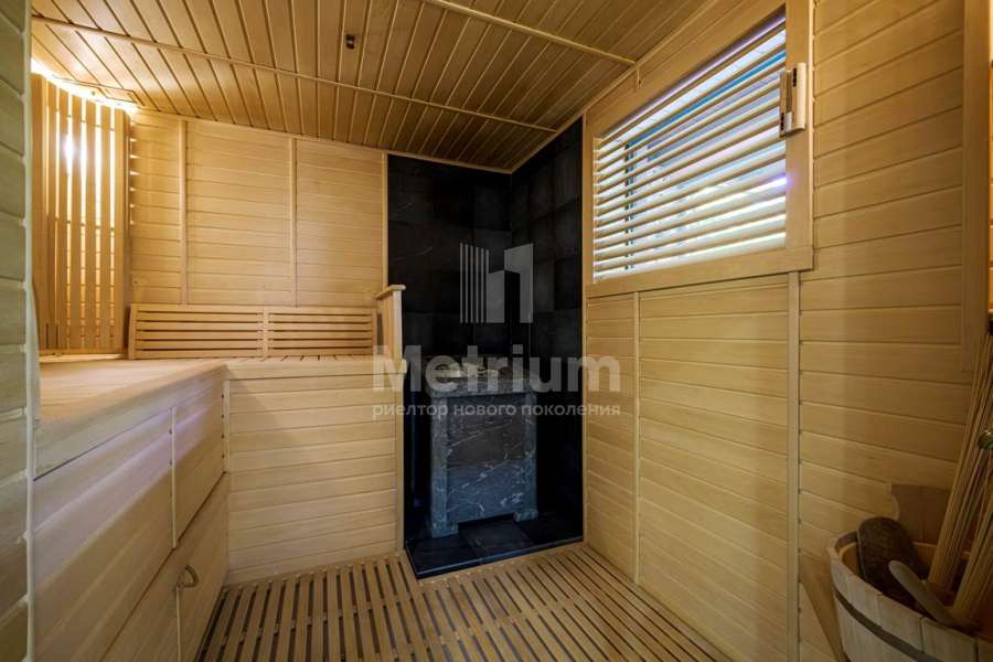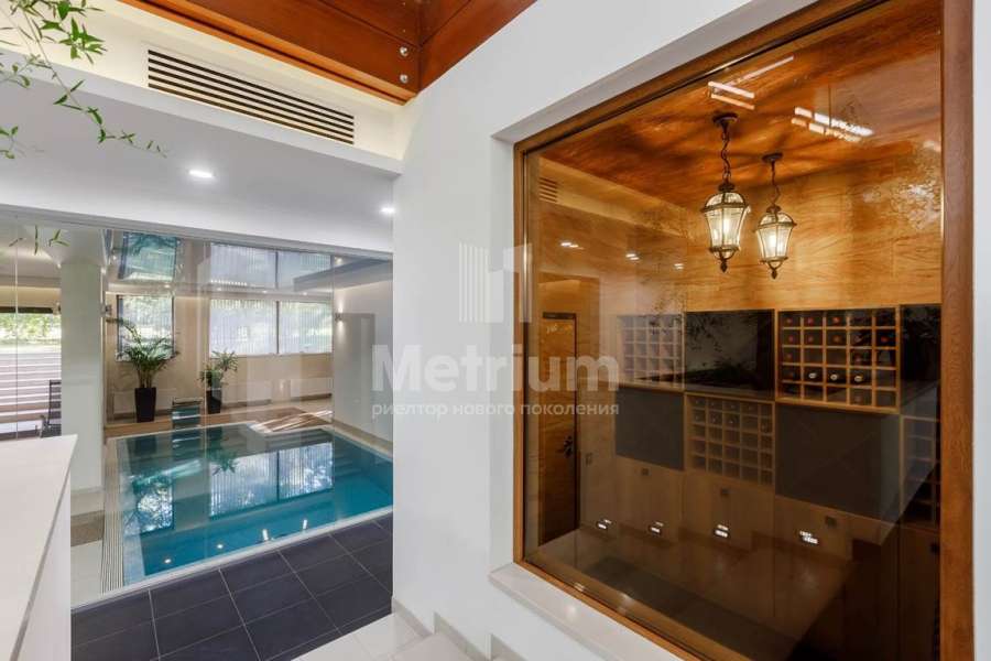 | Этажи/уровни: | Первый этаж: Гараж на 2 м/м, бассейн, сауна, душ, хаммам, кинозал, винный погреб, спальня для персонала с санузлом, бойлерная, помещение с резервным генератором, несколько технических помещений. Второй этаж: Хозяйская спальня с выходом на террасу, с будуаром, гардеробной и ванной с угловым остеклением; гостиная, столовая с выходом на террасу, кухня, две спальни с индивидуальными с/у, котельная, террасы. |