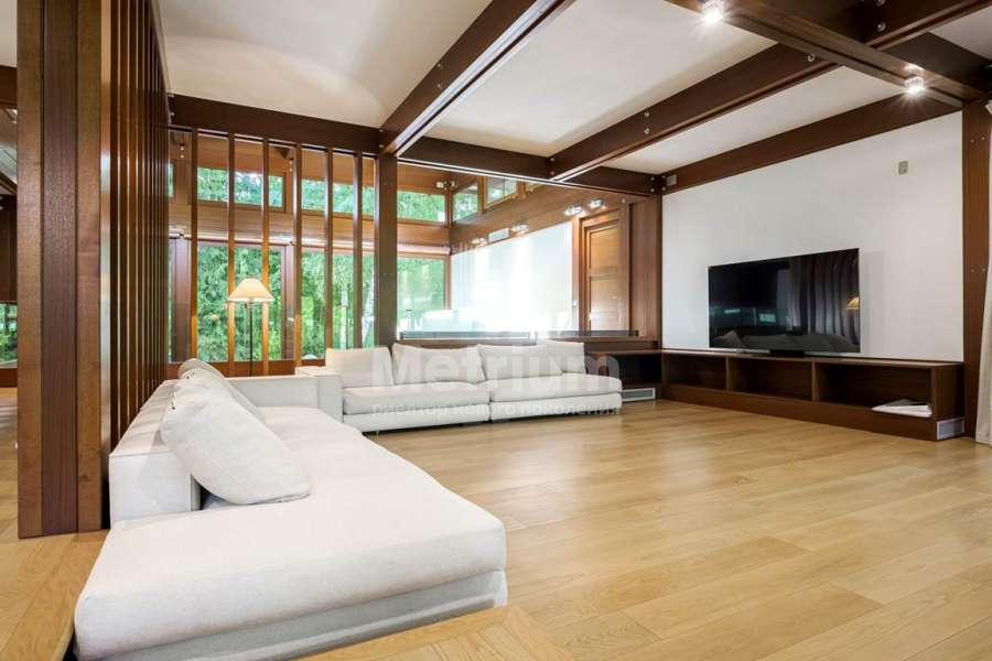 Дом 778 кв.м на участке 28 соток расположен вдали от шума и суеты на кромке гольф-поля в поселке на Клязьминском водохранилище. Дом полностью спроектирован, построен и меблирован силами сотрудников компании Pagano (Италия) – международного бренда класса люкс, одного из признанных лидеров мировой частной архитектуры. Участок 28,6 соток расположен на краю поселка. Непосредственно к территории домовладения примыкает гольф-поле. В 350 м расположено Клязьминское водохранилище. Выполнен ландшафтный дизайн. Панорамное остекление, На окнах установлены автоматические жалюзи, с пульта окна можно открыть в режиме проветривания. Задний фасад оборудован рольставнями.В доме установлена приточно-вытяжная вентиляция, есть запасной дизельный генератор. Подогрев водостоков в зимний период позволит избежать проблем с водоотведением.