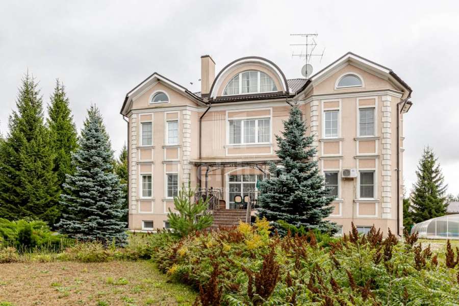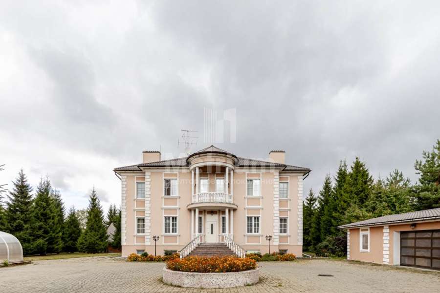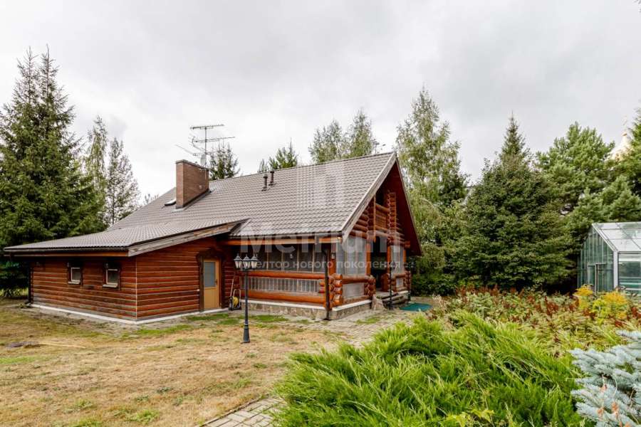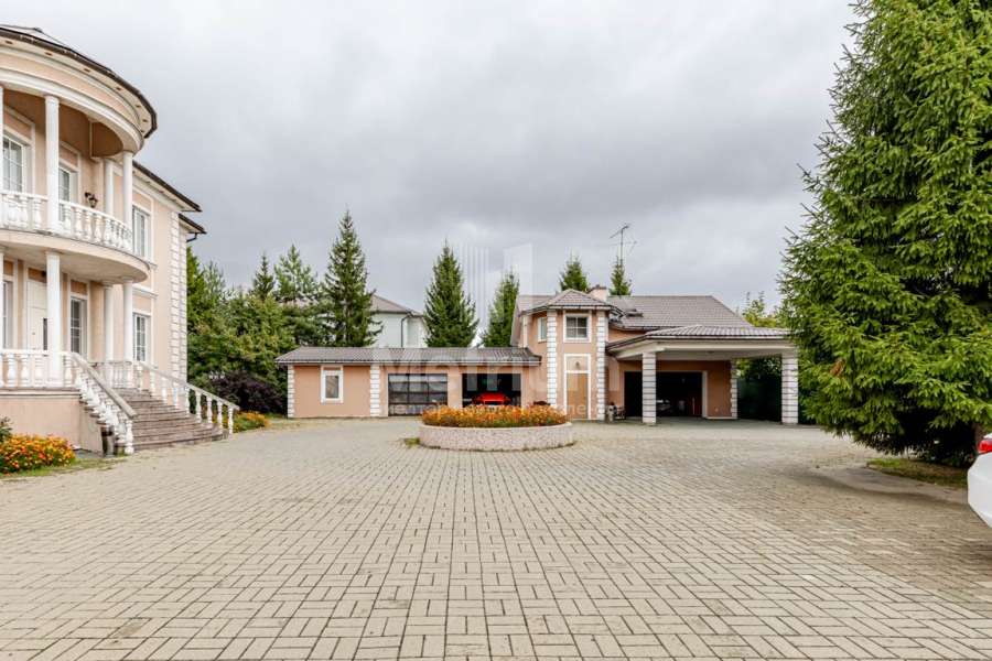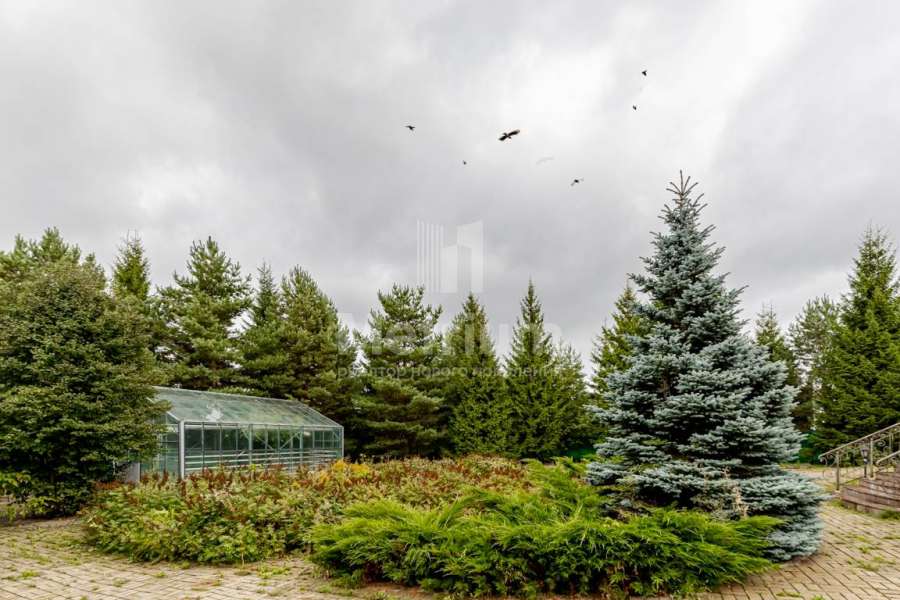 Участок в обжитом коттеджном поселке на Рублево-Успенском шоссе. Ровный ландшафт. На участке расположены дом, деревянный банный комплекс, открытый бассейн и гараж.